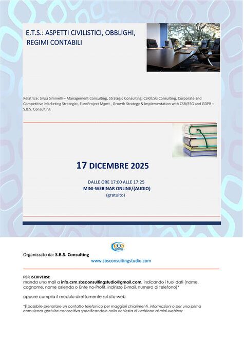 .E.T.S. Enti del Terzo Settore: aspetti civilistici, obblighi e regimi contabili